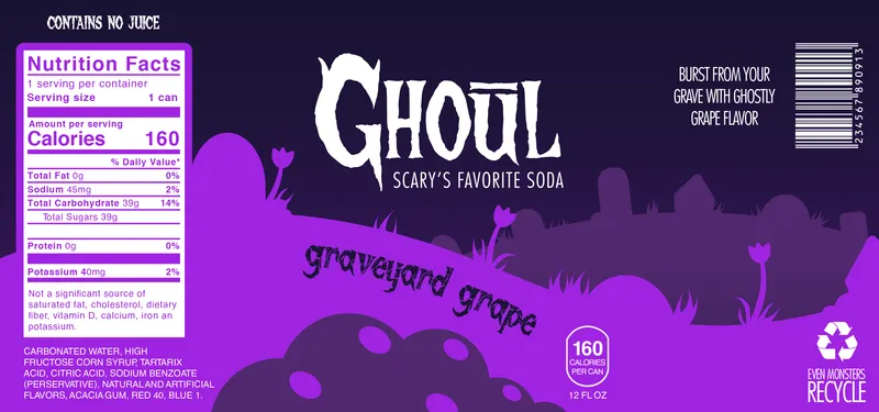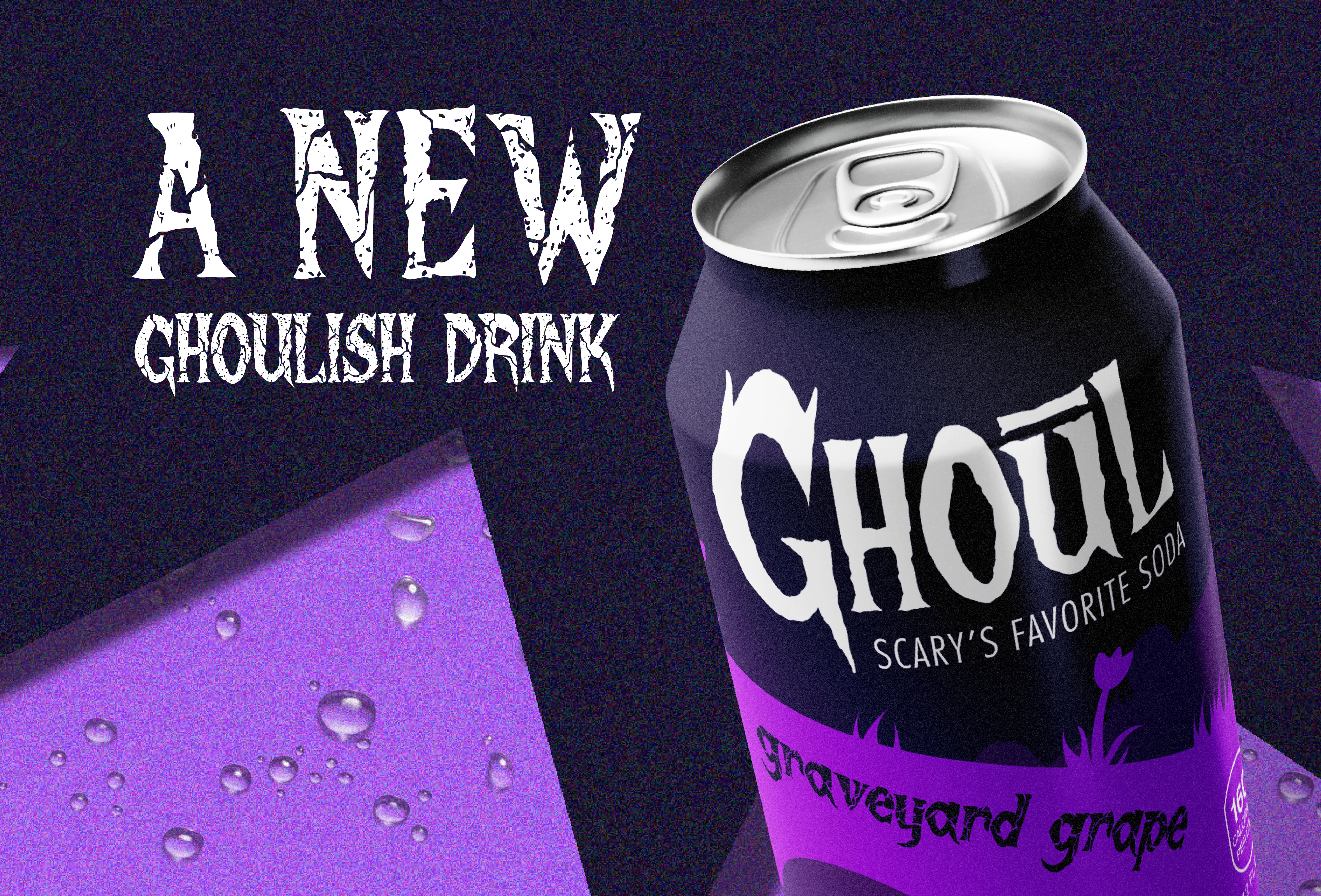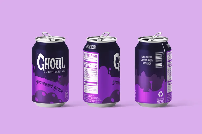 Ghoul is a concept project that I came up with, aiming to create a fun soda design to expand my portfolio. I wanted to create something that could have a spooky theme, but not necessarily be limited to Halloween.